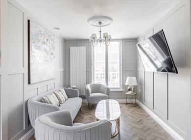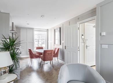 The building was originally a Straw Hat Factory dating back to 1840. The apartment has been tastefully refurbished with a focus on preserving the classical Victorian architecture while incorporating modern amenities. The spacious and bright interior is bathed in natural light, creating a relaxed and elegant atmosphere that is reminiscent of a boutique hotel.