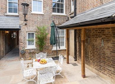 The apartment has a private landscape courtyard (shared with Apartment B) and has WiFi coverage, a bike rack, table with seating. The brick pathways are the original bricks which we salvaged from the chimneys, shrub & flowerbed boarders are laid with granite kerbs retained from the old Dunstable High Street.
