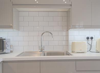 Solid marble dining table with suede chairs, fully integrated appliances in the kitchen including fridge/freezer - dishwasher - washer/dryer - oven - hob - extractor fan - microwave oven - coffee machine - toaster – kettle and complimentary coffee & tea
