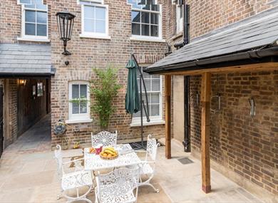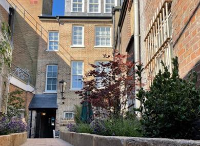 The apartment has a private landscape courtyard (shared with Apartment B) and has WiFi coverage, a bike rack, table with seating. The brick pathways are the original bricks which we salvaged from the chimneys, shrub & flowerbed boarders are laid with granite kerbs retained from the old Dunstable High Street.