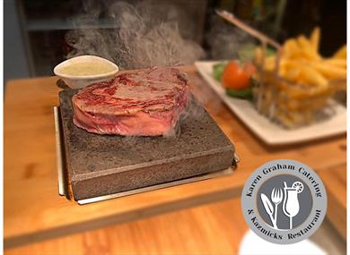 At night on a Thursday, Friday Saturday evening and Sunday afternoon we turn in to a fully licensed Hot Rock Steak Restaurant serving great steaks, sides, cocktails and more.