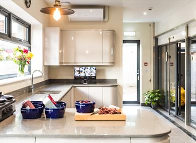 Beautiful open plan kitchen with a la carte menus in view of all guests.