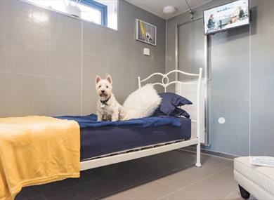 There are so many paw-sibilities for treats here. Think luxury lounging in our VIP rooms, tucking into delicious a la carte doggie dinners and plenty of pooch pampering in our modern grooming and relaxation spa. No, sorry – it’s only for dogs…