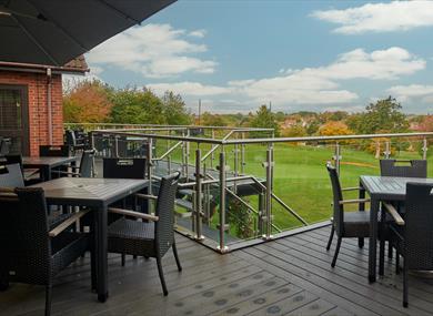 The 1st floor Bar and Terrace overlooks the picturesque golf course, and is open to both members and visitors alike, to relax and enjoy a drink and a wide range of food.