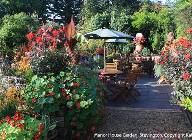 Kathy Brown’s Manor House Gardens at Stevington, just north of Bedford provides a garden destination with a very personal touch. Designed and cared for by Kathy and her husband Simon, over the last 25 years, the 4.5 acre garden is open to the public on Tuesdays afternoons 1-5pm May-September and certain Bank Holidays each year.