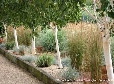 Late April to Early May for glorious spring bulbs, flowers on the lilacs, ceanothus, and viburnums as well as pretty ornamental cherries. A special treat are the stunning tree peonies amongst the white stemmed birches. Lots of spring containers.
